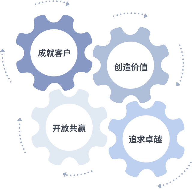 成就客户是一切决策的出发点,创造价值是衡量所有工作的标准,追求卓越是尊龙凯时做事做人的态度,开放共赢是尊龙凯时的格局也是最终的结果。价值观的齿轮环环相扣,推动着组织里的每个人不断向前。
